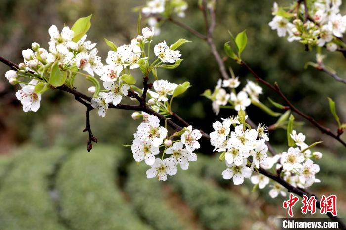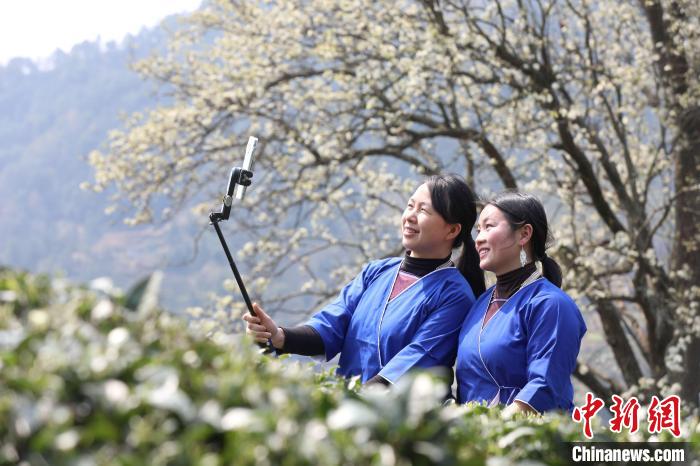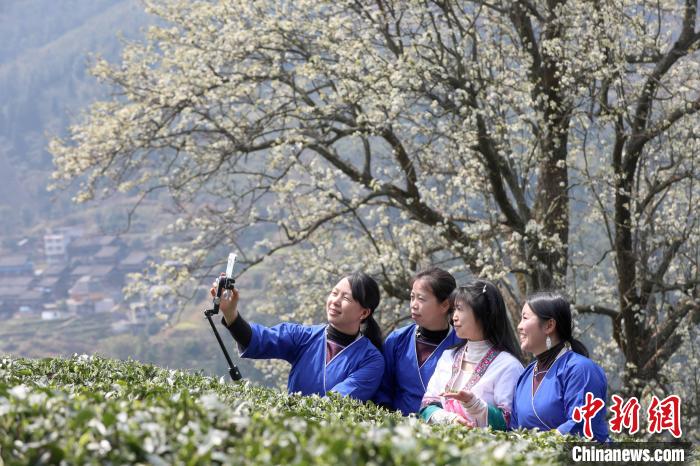 3月16日,廣西三江侗族自治縣八江鎮(zhèn)歸令村六更屯種植的千樹梨花迎春綻放,與青翠茶園、特色民居相映成趣,構(gòu)成一幅如詩如畫的春日畫卷。當(dāng)?shù)卮迕窦坝慰图娂娗皝聿刹栀p花、“打卡”拍照,享受春日美好時(shí)光。圖為村民在采春茶。龔普康 攝
