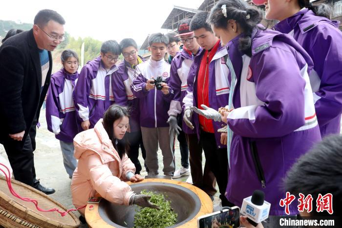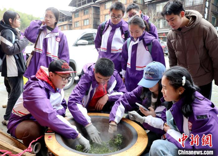 3月15日至16日,廣西柳州市一所中學(xué)組織千人研學(xué)團(tuán)到三江侗族自治縣八江鎮(zhèn)布央村仙人山景區(qū)開展茶文化研學(xué)活動,沉浸式采春茶、炒春茶、品春茶,深入了解茶種植、茶制作、茶文化、茶品鑒等知識,進(jìn)一步培養(yǎng)實踐能力、提高勞動素養(yǎng)。圖為研學(xué)活動現(xiàn)場。龔普康 攝