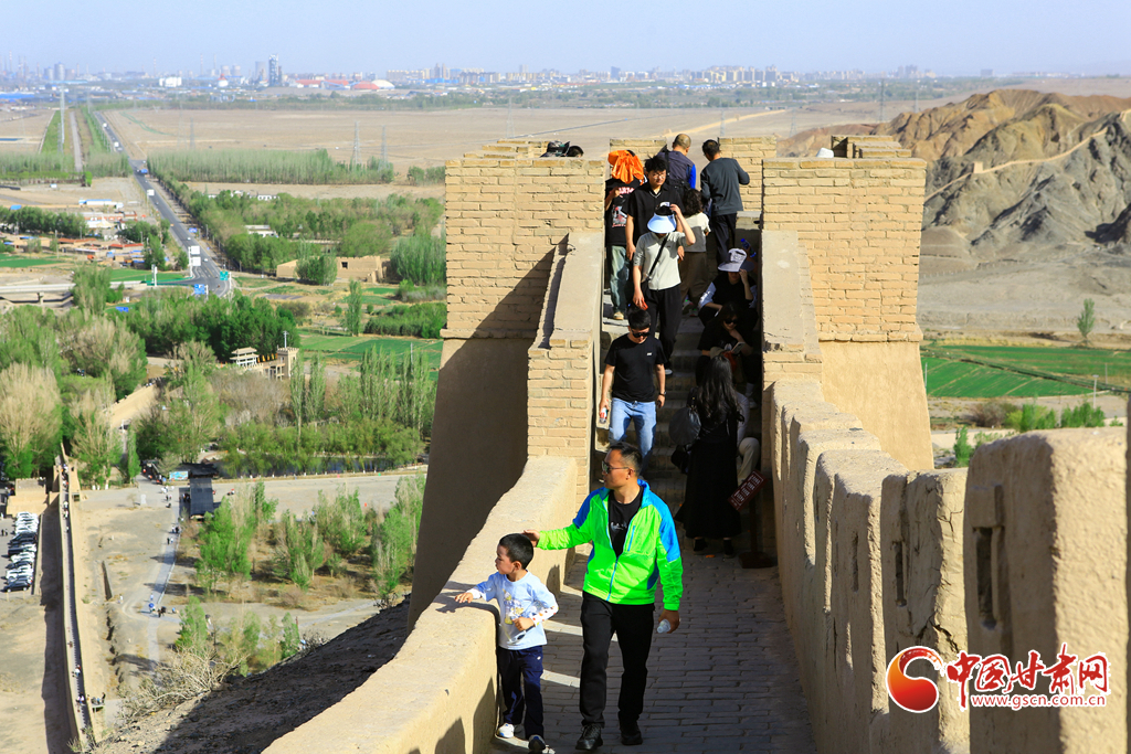 “五一”假期,甘肅省嘉峪關(guān)懸壁長(zhǎng)城旅游景區(qū)迎來了客流高峰,景區(qū)內(nèi)游人如織,熱鬧非凡。來自五湖四海的游客們紛紛慕名而來,踏上這段陡峭險(xiǎn)峻的懸壁長(zhǎng)城,親身體驗(yàn)其獨(dú)特的雄壯偉岸。他們站在城墻上,極目遠(yuǎn)眺,盡情領(lǐng)略著古長(zhǎng)城所獨(dú)有的壯麗自然景觀與深厚歷史底蘊(yùn)。