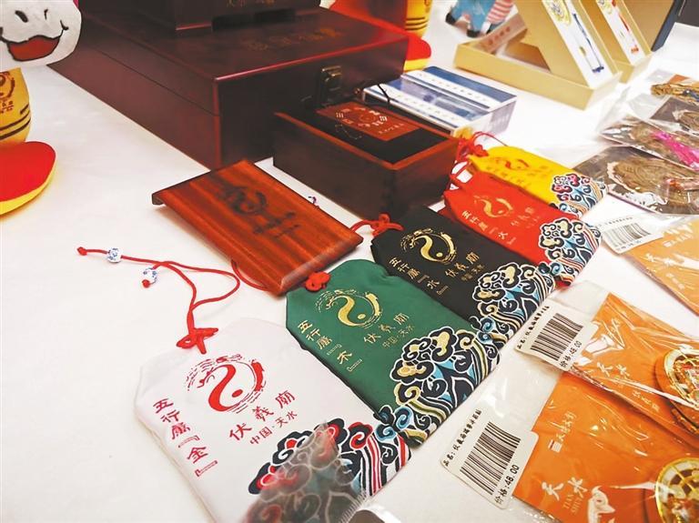 天水伏羲廟的文創(chuàng)產品河洛掛牌也很受歡迎。“掛牌是用天水伏羲廟的側柏制作的,掛牌正面是太極八卦圖,背面是河圖洛書,側面是北斗七星,十分精美,寓意美好。”天水市博物館文化產業(yè)部工作人員楊萱慧說,“我們還特意為掛牌制作了5種顏色的收納包,分別代表‘金、木、水、火、土’,大家可以按自己喜好選購收納包來收納河洛掛牌。”