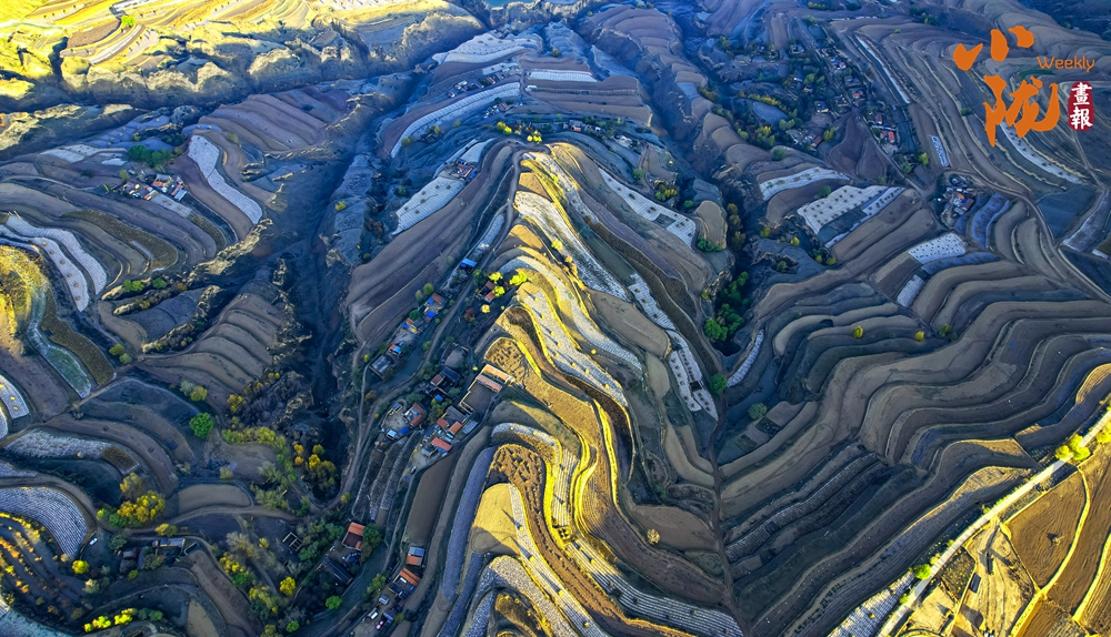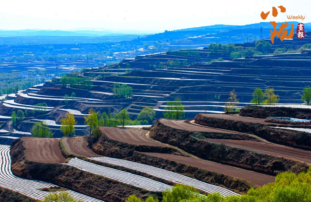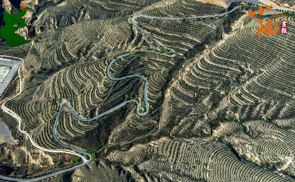 萬畝梯田錯(cuò)落有致,層層彎曲盤繞,從高空俯瞰猶如大地“指紋”。當(dāng)?shù)亟?jīng)過多年的小流域治理,昔日的荒山禿嶺,今日滿目綠意盎然。那些蜿蜒曲折的梯田線條猶如畫家筆下的抽象作品,充滿了韻律感和節(jié)奏感。尤其是在清晨或傍晚時(shí)分,柔和的光線將梯田勾勒得更加立體,光影交錯(cuò)之間,每一幀畫面都像是一張精美的攝影作品。