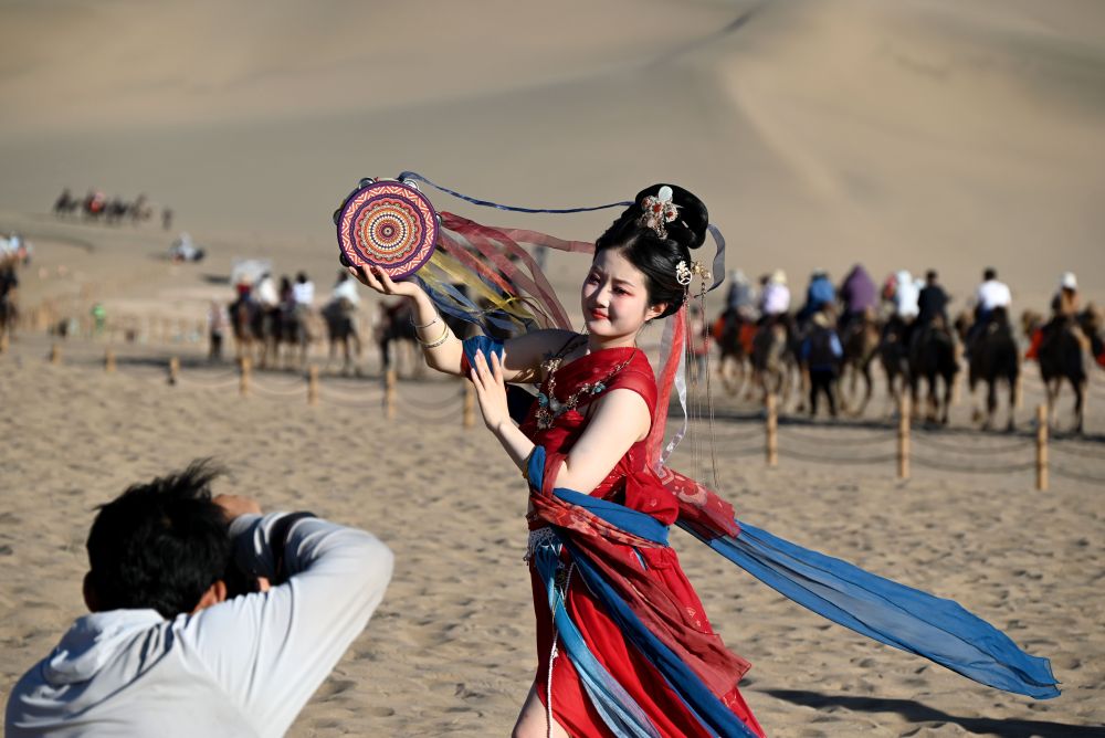 近年來(lái),甘肅省敦煌市深入挖掘特色資源,推出旅游優(yōu)惠政策措施、智能化體驗(yàn)服務(wù)和低空飛行、旅拍等文旅項(xiàng)目產(chǎn)品,不斷豐富文旅業(yè)態(tài),激發(fā)文旅消費(fèi)新動(dòng)能。據(jù)敦煌市文旅部門統(tǒng)計(jì)數(shù)據(jù)顯示,今年1至4月份,敦煌市旅游接待人數(shù)538.78萬(wàn)人次,同比增長(zhǎng)25.8%。