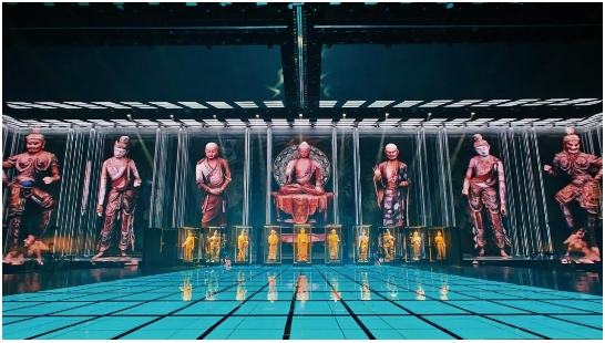舞美奇觀:運(yùn)用前沿?cái)?shù)字技術(shù),結(jié)合精妙的舞臺(tái)設(shè)計(jì)和燈光效果,在舞臺(tái)上立體還原敦煌洞窟的恢弘與壁畫的精妙,營(yíng)造如夢(mèng)似幻的沉浸式觀演體驗(yàn)。