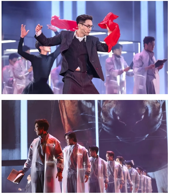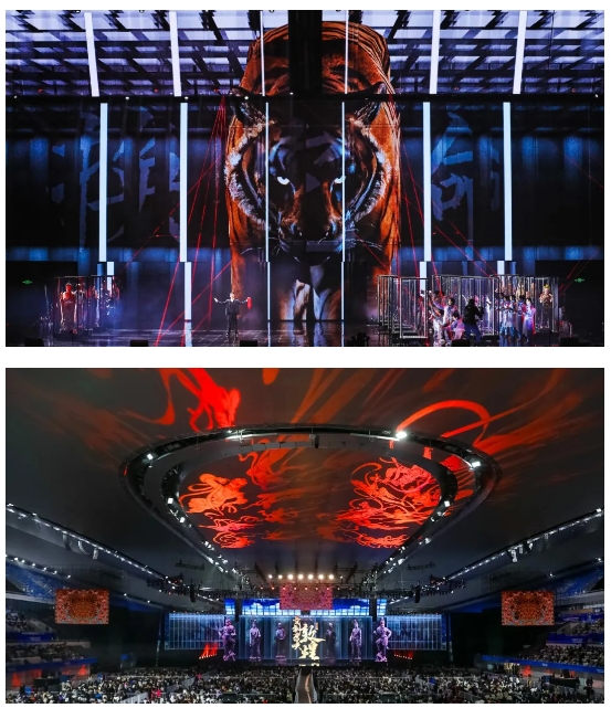 該劇最大的亮點(diǎn)在于創(chuàng)新性藝術(shù)融合,將非遺、科技、禪意、潮流、AI融入先鋒音樂話劇,打破傳統(tǒng)觀演模式和傳統(tǒng)舞臺(tái)結(jié)構(gòu),巧妙植入演唱會(huì)、音樂劇、話劇、舞劇甚至是電影多種藝術(shù)表現(xiàn)形式,通過人工智能、影視化、動(dòng)畫真人融合等最新科技賦能舞臺(tái),實(shí)現(xiàn)“戲劇+影視+Live”多種藝術(shù)場(chǎng)域的融合,“創(chuàng)造”了既現(xiàn)代又滿載中國(guó)審美的“敦煌”空間,讓觀眾沉浸體驗(yàn)敦煌文化的輝煌與魅力。