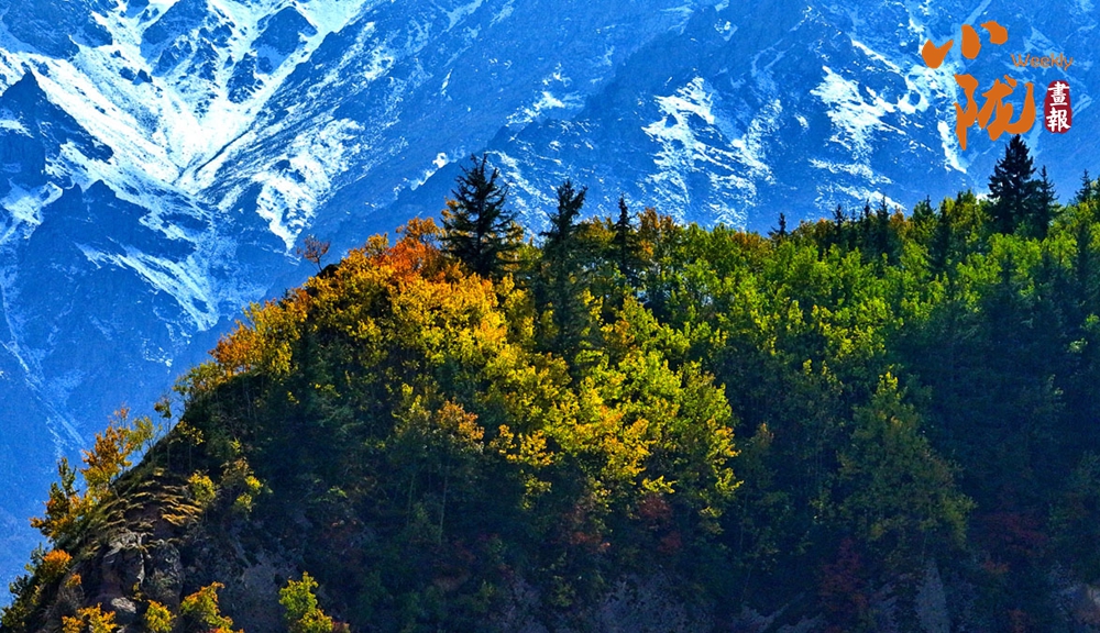 秋風(fēng)吹過,祁連山的原始森林悄然換裝。黃綠交織,紅金點(diǎn)染,仿佛大自然執(zhí)筆揮灑的油畫,靜謐而熱烈。尤其是在陽光的照耀下,與遠(yuǎn)處的雪山和湛藍(lán)的天空、潔白的云朵,形成鮮明的對比。
