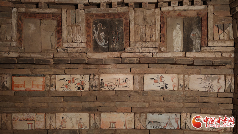 據(jù)考證,這批磚畫年代鎖定為公元3世紀(jì)中葉至4世紀(jì)初,以“一磚一畫”的極簡構(gòu)圖,將河西走廊古民居、農(nóng)牧、宴樂、神話與升仙想象封存至今,被譽為“可移動的地下壁畫館”。