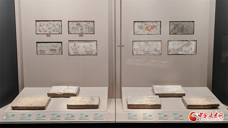 值得一提的是,這些壁畫磚在藝術表現(xiàn)上獨具特色,既有一磚一畫、一磚一景的獨立構圖,也有多磚一畫的連續(xù)畫面。壁畫內容包羅萬象,從生產勞動到社會生活,從神話傳想到現(xiàn)實場景,構成了一部連綿不斷的“地下動畫”,全景式地展現(xiàn)了魏晉時期河西走廊地區(qū)的社會生活。