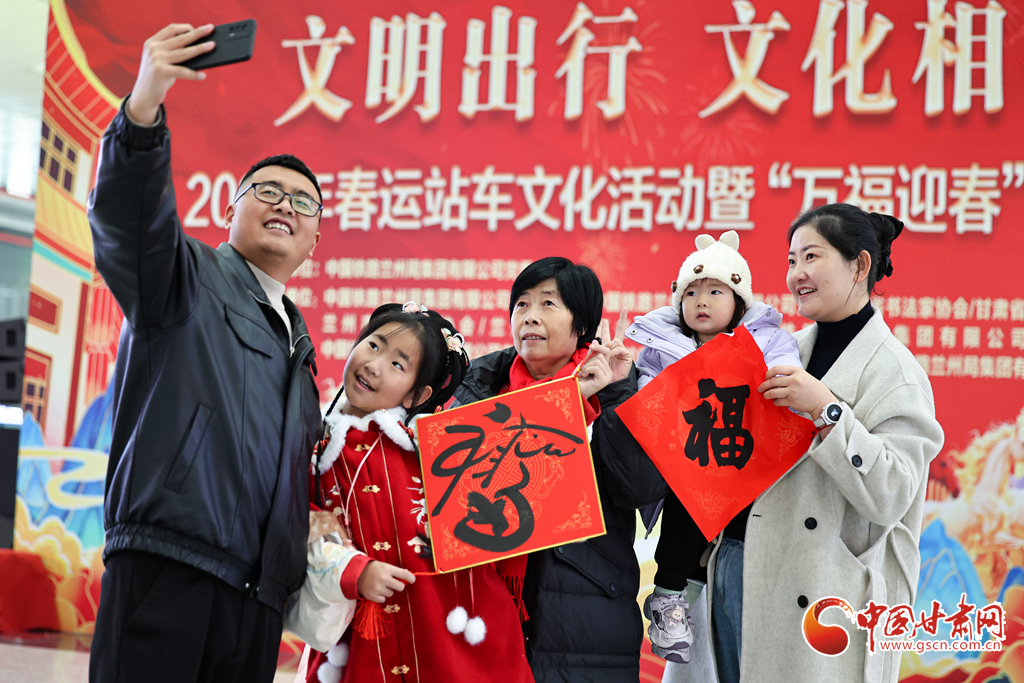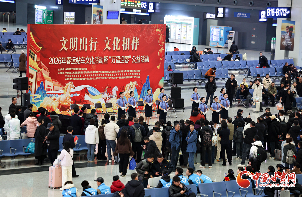 2月2日,2026年鐵路春運(yùn)大幕正式拉開(kāi)。中國(guó)鐵路蘭州局集團(tuán)有限公司在蘭州西站候車廳開(kāi)展“文明出行 文化相伴”特色暖心活動(dòng),邀請(qǐng)書(shū)法愛(ài)好者揮毫寫(xiě)春聯(lián)、贈(zèng)“福”字,同時(shí)奉上精彩文藝表演,為旅客的回家路增添濃濃年味與溫情。