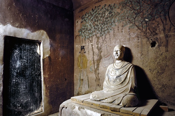莫高窟第17窟是舉世聞名的藏經洞。1900年,這里石破天驚,出土數(shù)萬件文物,“國際顯學”敦煌學也由此發(fā)軔。如今來到第17窟,眼前是一身作禪修狀的僧人塑像。人們不禁發(fā)問,他是誰?