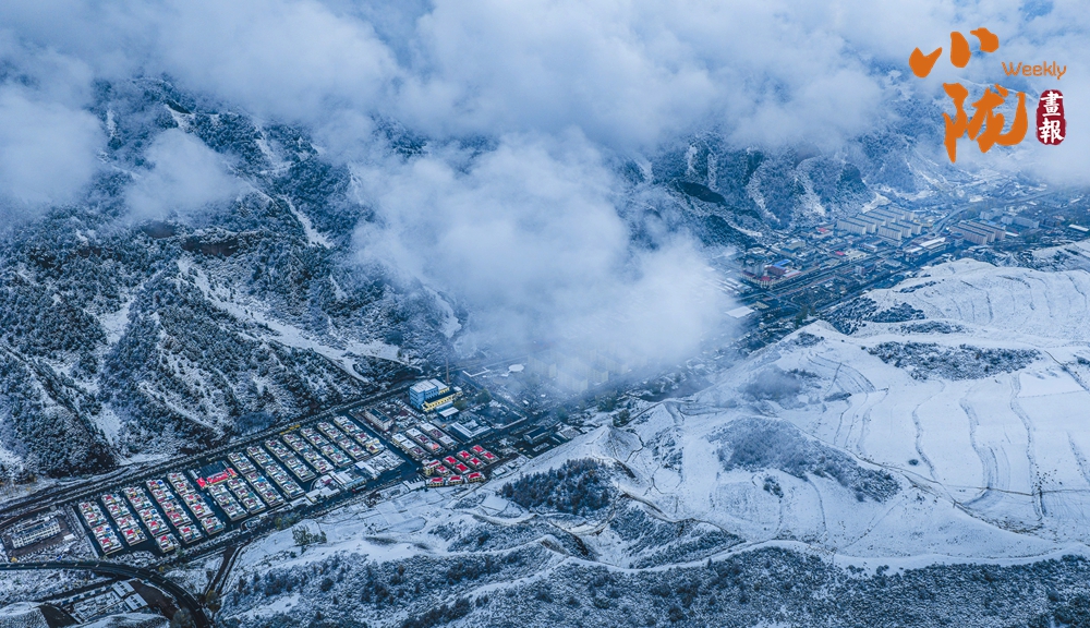 從高空俯瞰,烏鞘嶺的山脊線在雪中若隱若現(xiàn),一側(cè)云海翻騰,一側(cè)晴空萬里,形成鮮明的“一山分兩景”的奇觀。