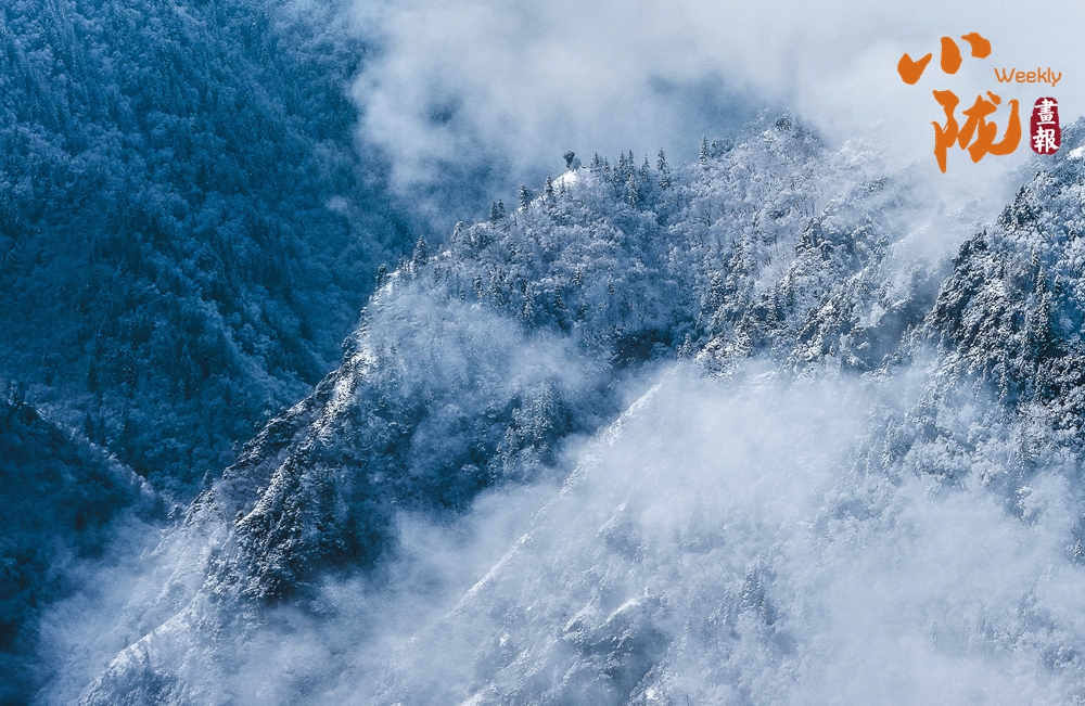 山腰墨綠色的松林,松枝上掛滿了毛茸茸的雪凇。那不是雪,那是大自然最細(xì)膩的工筆,描繪出的雪凇奇觀。風(fēng)起時,細(xì)碎的冰晶簌簌飄落,折射出萬千銀光,如夢似幻。